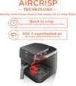 - AIR CRISP TECHNOLOGY: 400℉ superheated air surrounds food for hot, crispy results with little to no oil.